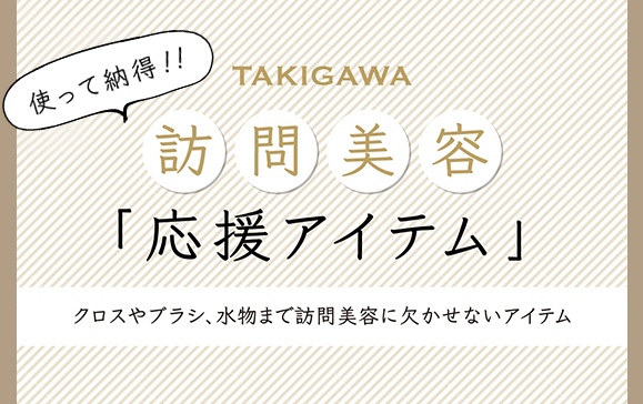 「訪問美容」で活躍するアイテムを紹介します。商材はすべて滝川株式会社で扱っているものばかりです。